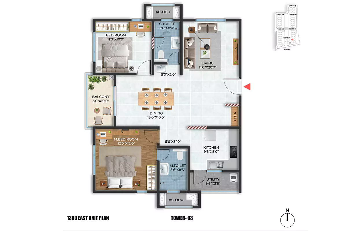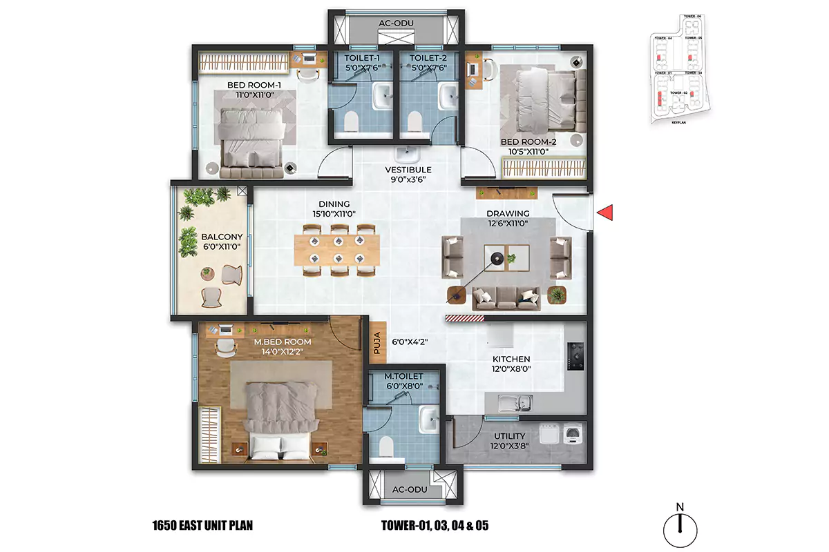 3BHK- 1650Sft, 1900 Sft, 2200 Sft, 2230 Sft,2600 Sft, 2750 Sft, 2760 Sft.
