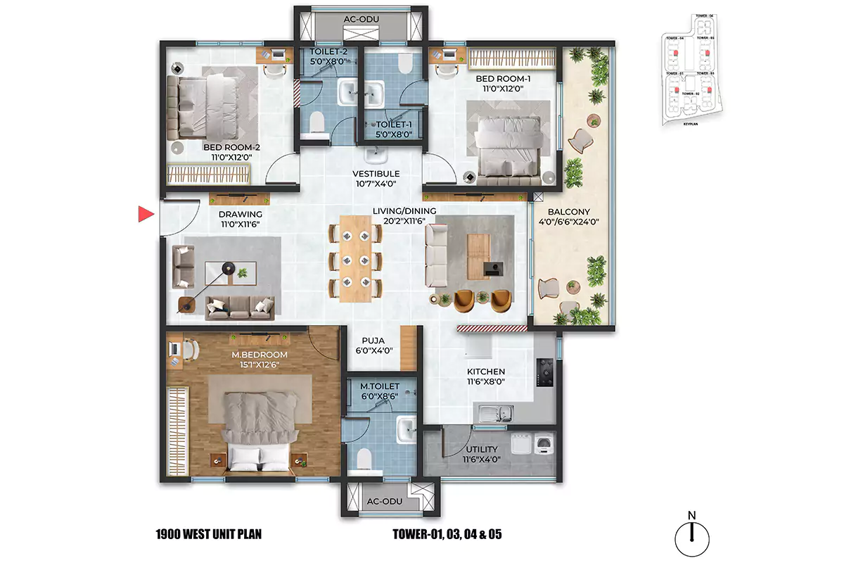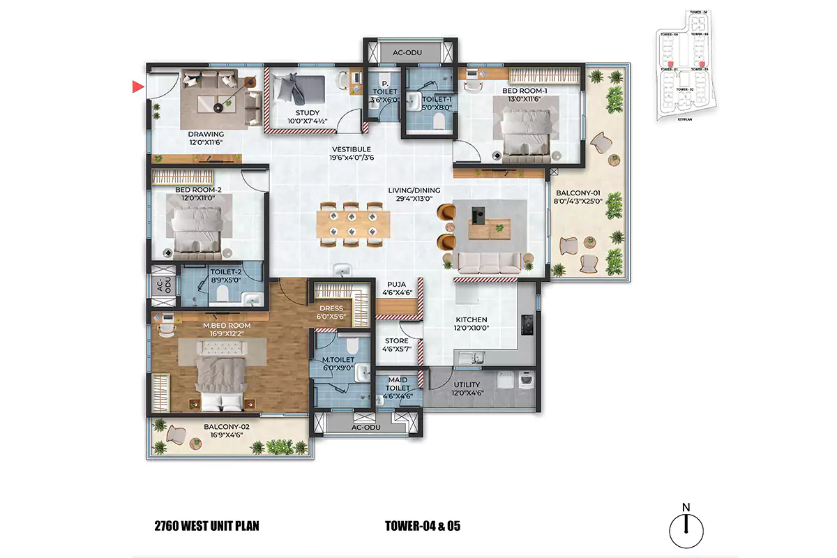 4BHK- 3170 Sft, 3580 Sft, 3775 Sft, 3805